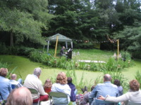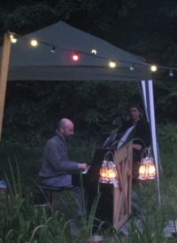Uitnodiging: ....Vanaf half negen start een ( akoestisch ) muziek-programma . Wij zorgen voor de aankleding en de muziek, drankjes en hapjes. Wij hopen dat je een klapstoeltje, kleed of kistje meeneemt om eventueel op te zitten. Verder misschien een middeltje tegen eventuele muggen.......